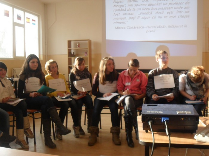 Luni dimineaţă, elevilor li s-a predat „Ştafeta atitudinilor pozitive” de către prof. Horbovanu Cristina, astfel că activităţile au debutat cu un „flash mob”, idee preluată de la reuniunea de proiect Comenius desfăşurată în Belgia, în luna octombrie, care s-a dorit un gest cu scop de conştientizare a agresiunilor umane asupra mediului înconjurător. În aceea zi, ştafeta a fost preluată de către organizatorii cercului lectură care au abordat relaţia contemporanilor cu literatura, alegând drepturile cititorului sub coordonarea profesorilor Humă Alina-Manuela şi Foltea Nicoleta, ca punere în practică a unei viziuni originale asupra lecturii prezentată la cercul judeţean „Pledoarie pentru lectură”.
