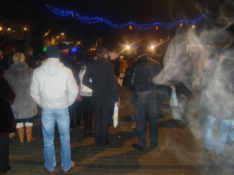 Desi au fost anuntati, niciunul din reprezentantii urbei nu a urcat pe scena asa, cum au facut in anii anteriori, pentru numaratoarea inversa, dar si pentru a le face urari de inceput de an sutelor de botosaneni care au ales sa petreaca Revelionul in aer liber. Miezul noptii a fost marcat de un impresionant foc de artificii dupa care a urmat un program muzical pentru cei mai tineri de la care nu a lipsit nici trupa Music Impact, anuntata pe afis. Marius Honceriu a fost amfitrionul serii. Lui i-a revenit si sarcina de a numara ultimele minute din anul trecut.