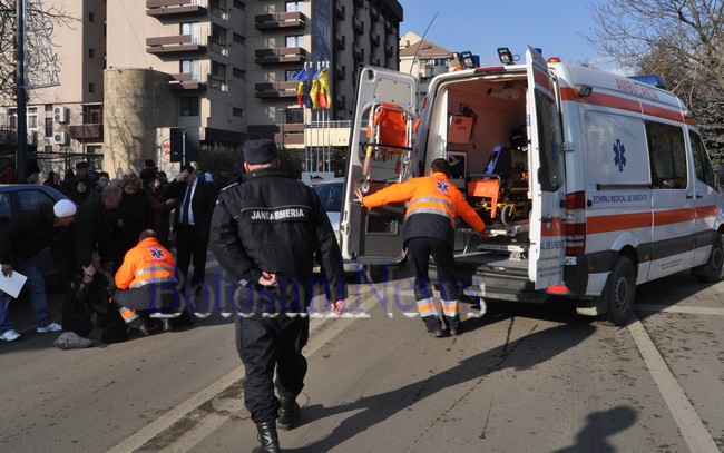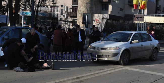 Doi bătrâni au fost loviţi, joi la amiază, pe o trecere de pietoni din apropierea Teatrului Mihai Eminescu. Soţii Petru şi Aurica Pogoriceanu au coborât pe Pietonalul Unirii şi au încercat să traverseze Cuza Vodă spre teatrul, însă au fost loviţi în plin de un Renault Megane condus de Florin Ropitu, de 37 de ani, din Bucureşti. Femeia de 62 de ani a fost rănită grav, fiind transportată cu ambulanţa la Spitalul Judeţean Mavromati. Bărbatul era rănit uşor şi nu a necesitat internare.