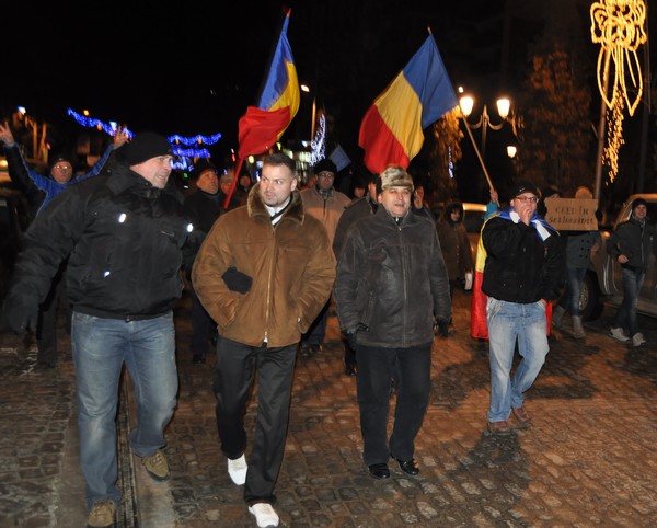 De asemenea, ei au strigat lozinci de tipul: "Ole, ole, ole!/ Băsescu nu mai e!", "Singura soluţie/ Încă o Revoluţie!", "Ieşi afară, javră ordinară!", Băsescu cu gaşca lui/ Ruşinea poporului!".