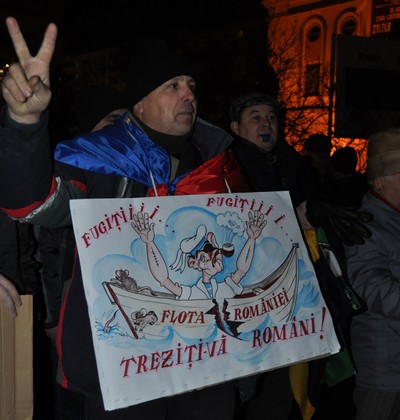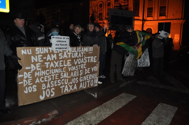 „Pentru noi eşti un rahat/Nu mai eşti un şef de stat”, au strigat manifestanţii.