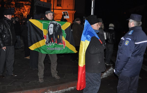 Un participant la proteste a venit cu un steag cu Bob Marley, pe care îl consideră simbolul libertăţii.