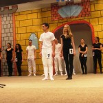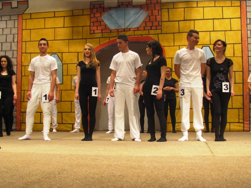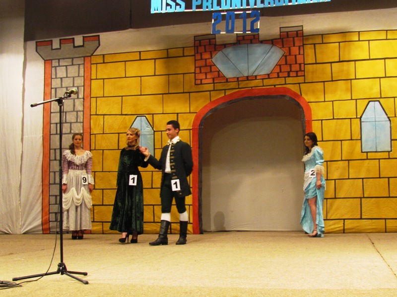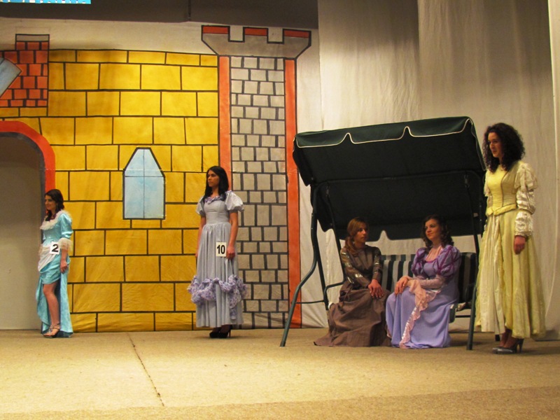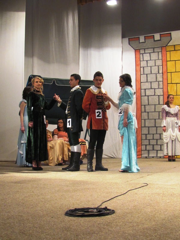 Prima proba la care au dat curs concurenții a fost cea de zi. Tinerii au îmbracat ținute de epocă purtate, pe vremuri, la baluri, încercând să fie cît mai grațioși în pașii făcuți pe scenă. Două balansoare așezate de o parte și de alta a scenei și un decor care a imitat ușa unui castel au întregit încercarea adolescenților de a-i plimba pe spectatori în vremurile de odinioară.