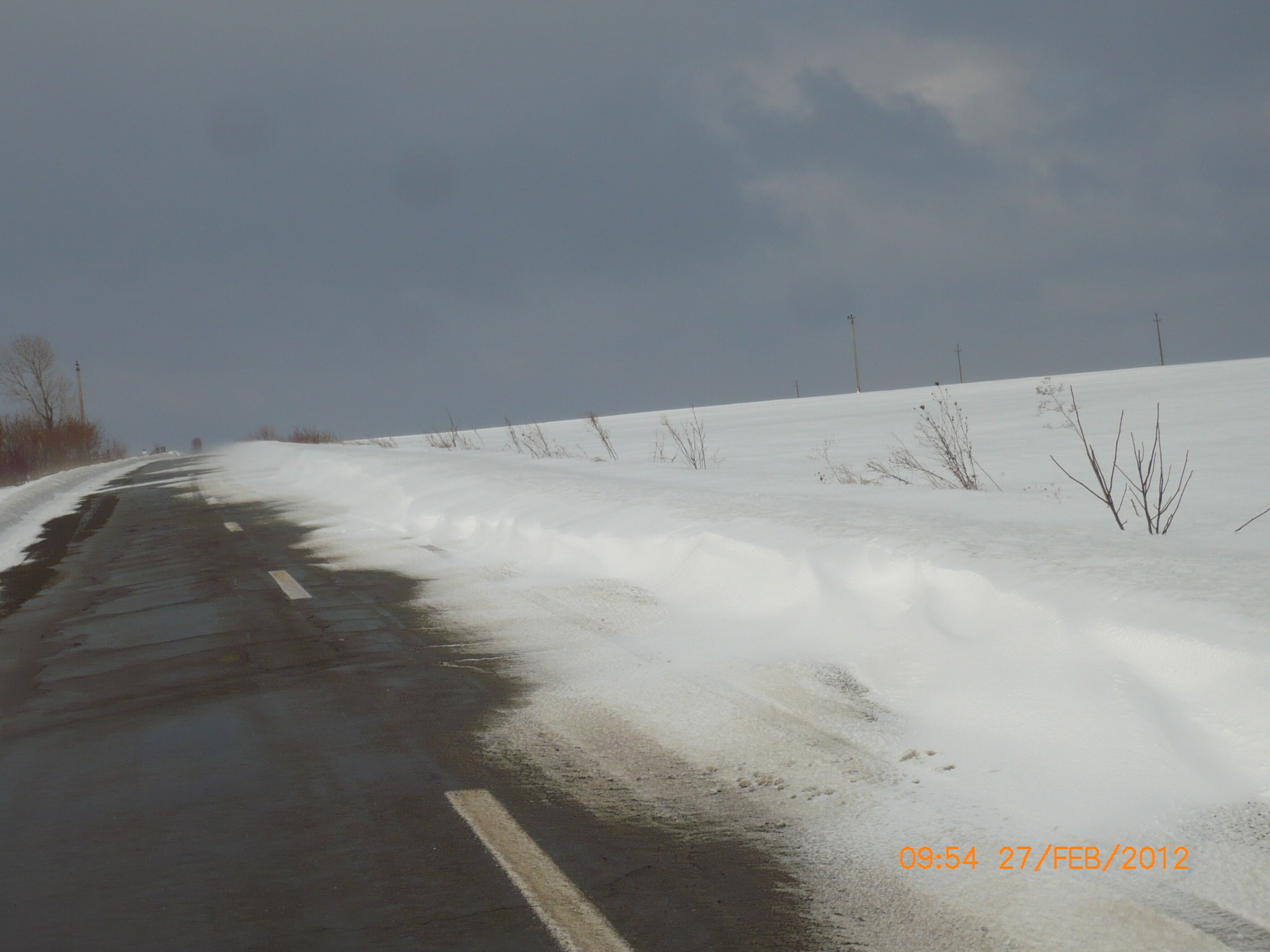 Pe aceste drumuri stratul de zăpadă a atins trei centimetri, iar pe alocuri s-au format suluri mari de zăpadă.