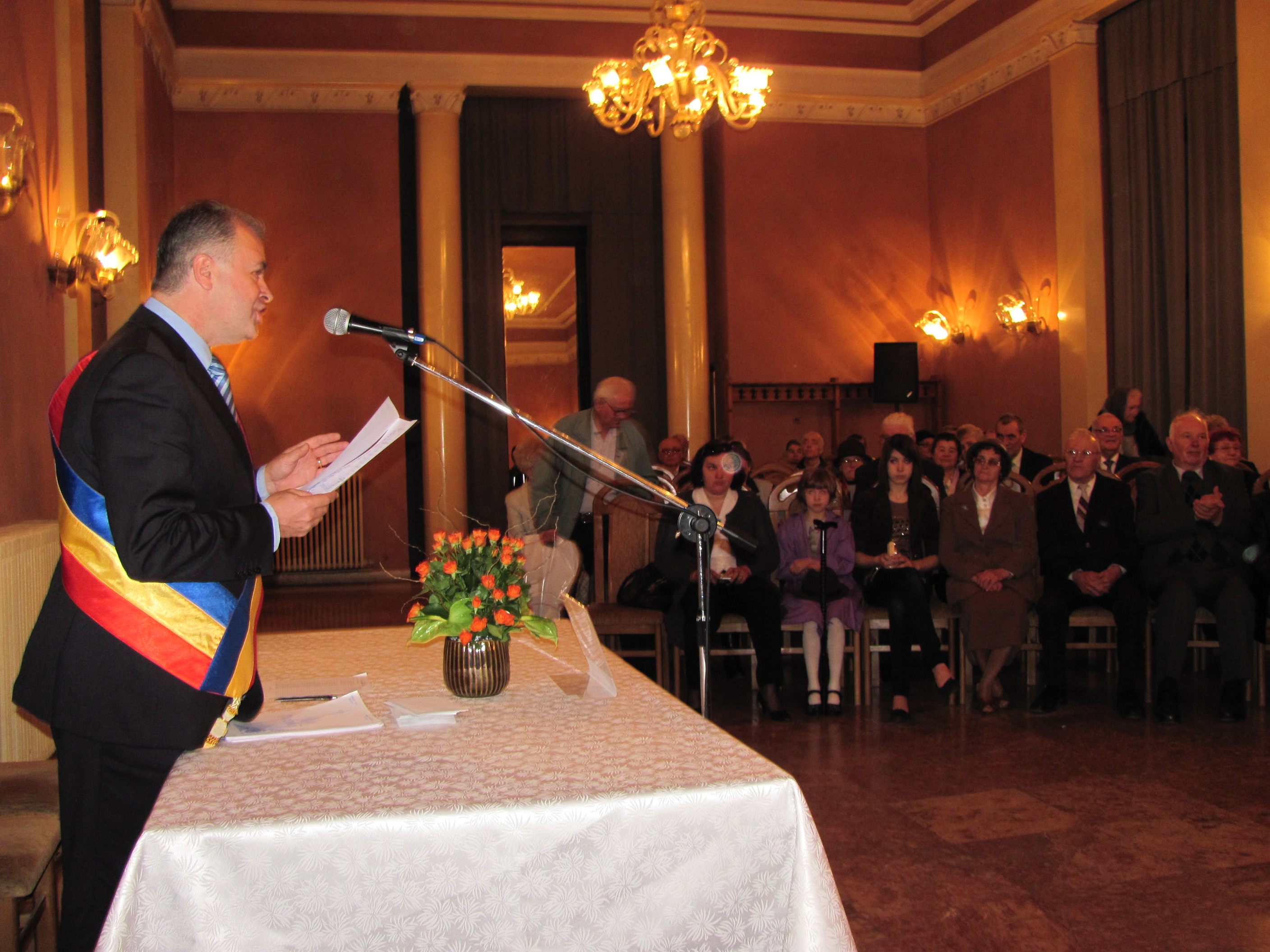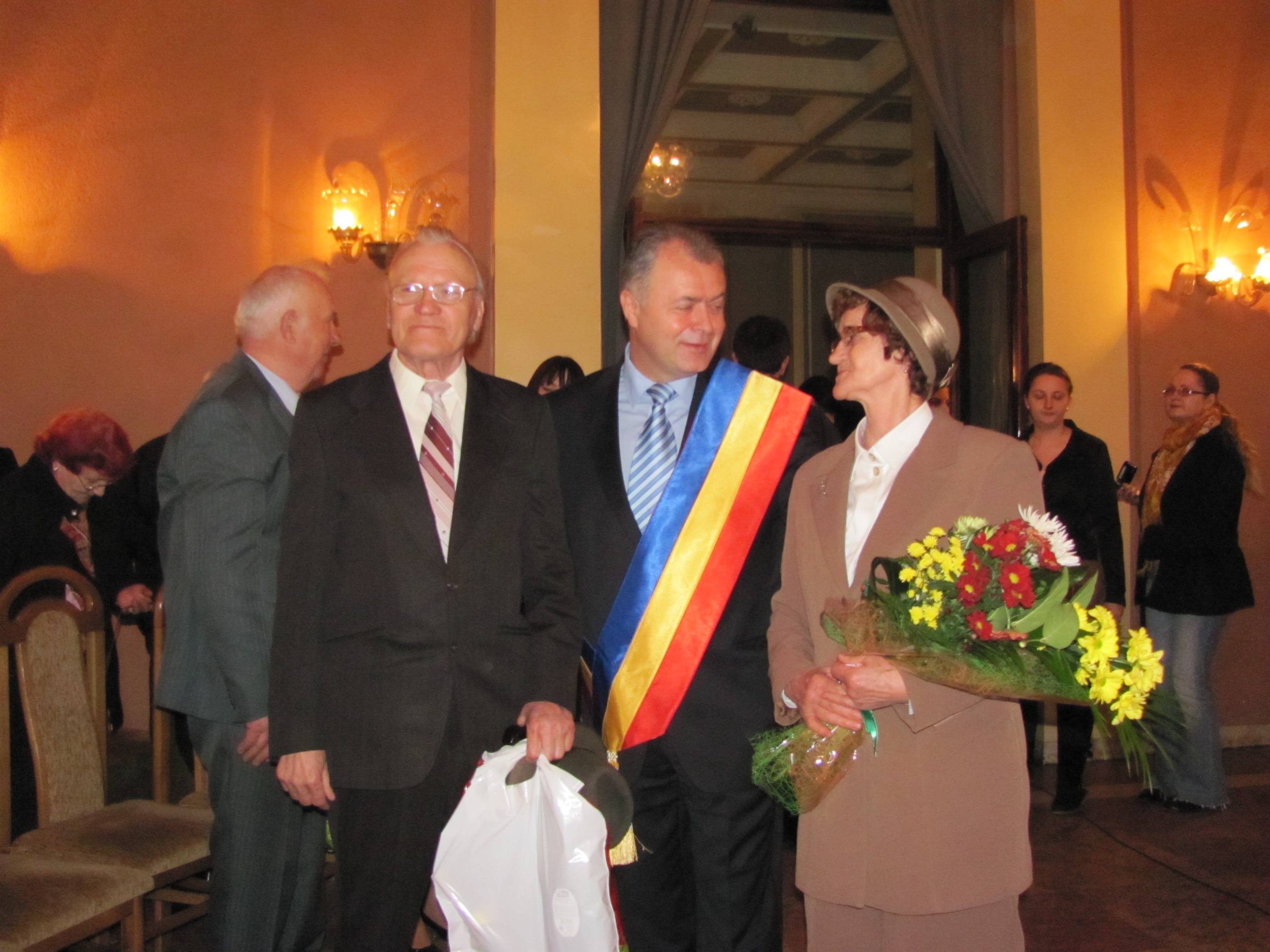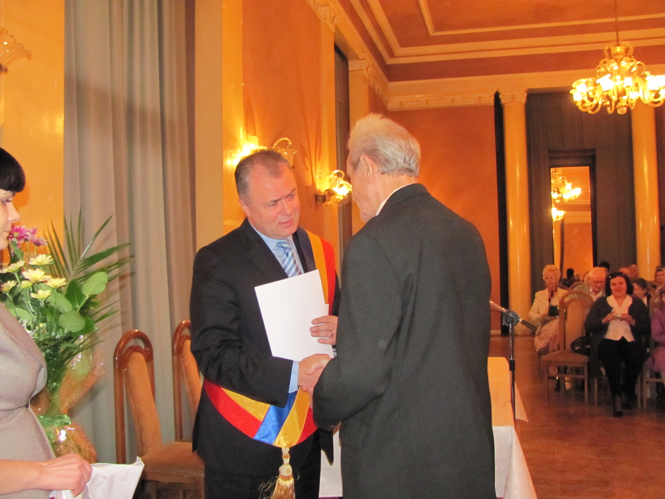 Primarul Cătălin Flutur a felicitat la Teatrul Mihai Eminescu primele cupluri care au împlinit anul acesta 50 de ani căsătorie. Ceremonia a avut loc la sala de marmură a teatrului şi din cele 32 de cupluri prezente, două dintre ele au împlinit 57 şi respectiv 58 de ani. Edilul-şef al urbei i-a felicitat pe bătrîni şi le-a mulţumit pentru eforturile pe care le fac pentru a fi cu plata obligaţiilor către stat la zi. "În primul rând vreau să vă mulţumesc pentru ce aţi făcut pentru municipiul Botoşani. Probabil, dacă nu era munca dvs, în timp, Botoşaniul ar fi arătat altfel. Vreau să vă mulţumesc dumneavoastră pentru că, ştiu cât de greu vă este şi, când vorbesc de greutăţi, mă gândesc la pensile dvs, la posibilităţile materiale reduse, dar sunteţi primii care, din puţinul pe care îl aveţi, vă achitaţi mai întâi obligaţiile faţă de stat, faţă de noi, plătind taxele şi impozitele locale", le -a spus primarul Cătălin Flutur.