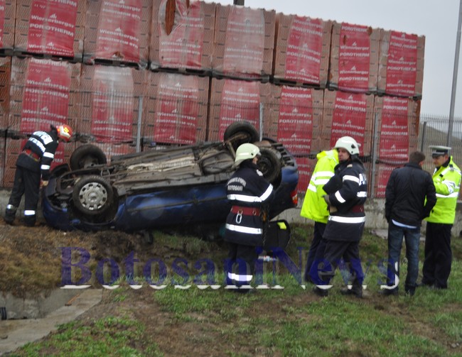 O familie din Botoşani s-a dat peste cap cu maşina, duminică dimineaţă, la ieşirea din Botoşani spre Orăşeni Deal. Autoturismul, un Opel Astra, în care părinţii şi cei doi copii ai lor se aflau, s-a răsturnat oprindu-se în gardul depozitului de materiale de construcţii Duo Mat de la Lebăda.