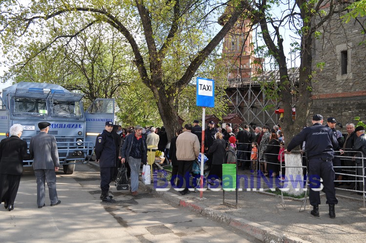 Racla a fost adusă la Biserica Sfântul Gheorghe cu o gardă de onoare formată din soldaţi de la Garnizoana Botoşani. Ea a fost întâmpinată de preotul paroh Gheorghe Mateciuc, care a fost însoţit de un sobor de preoţi. De asemenea, la primire au luat parte şi primarul Cătălin Flutur şi prefectul Cristian Roman, care au sărutat moaştele imediat după ce au fost coborâte din maşină. Moaştele vin de la Biserica Feredeni din Iaşi şi vor sta trei zile.