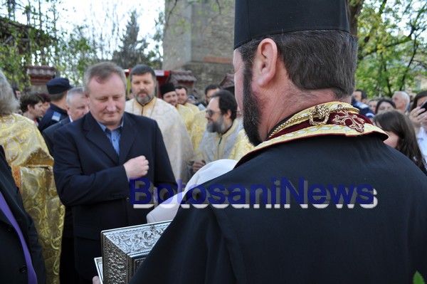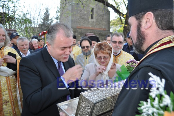 Sute de credincioşi au participat, duminică după-amiază, la ceremonia de aducere, la Botoşani, a moaştelor Sfântului Mare Mucenic Gheorghe. Bucăţile de trup ale Sfântului Gheorghe au fost aduse la Biserica "Sf. Gheorghe" din Botoşani, cu prilejul hramului de pe 23 aprilie, când este marcată şi Ziua municipiului Botoşani.