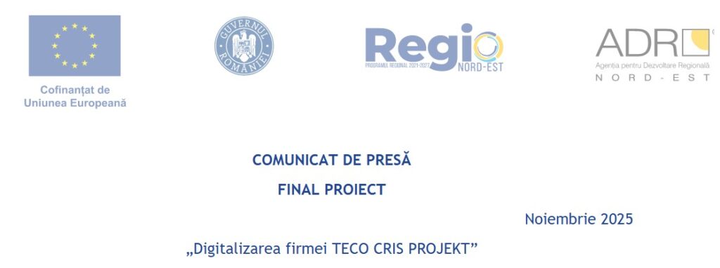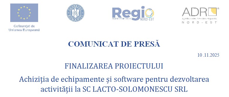 Anunț finalizarea proiectului „Achiziția de echipamente și software pentru dezvoltarea activității la SC LACTO-SOLOMONESCU SRL” 10 noiembrie 202511 noiembrie 2025 …