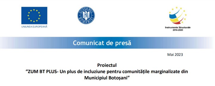 Proiectul “ZUM BT PLUS- Un plus de incluziune pentru comunitățile marginalizate din Municipiul Botoșani” 9 mai 202310 mai 2023 …