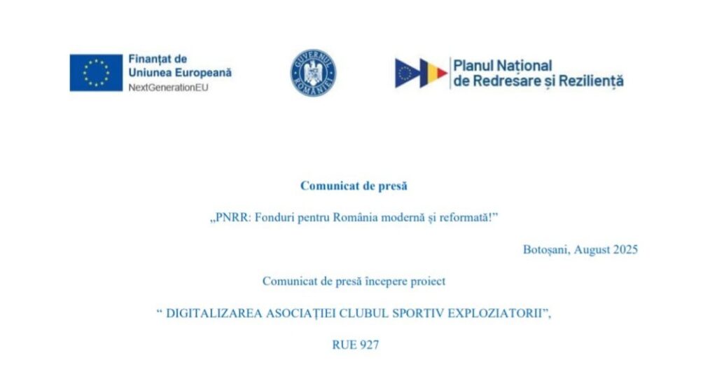 Comunicat de presă începere proiect „Digitalizarea Asociaţiei Clubul Sportiv Exploziatorii” 6 august 20256 august 2025 …