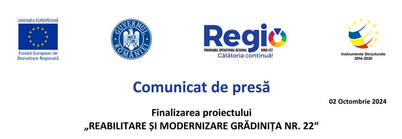 Comunicatul de presă lansarea proiectului: Dotarea cu echipamente medicale adecvate pentru îmbunătățirea programului de screening al nou-născuților din cadrul Secției Exterioare O-G a Spitalului Județean de Urgență „Mavromati” Botoșani 20 iunie 202420 iunie 2024 …