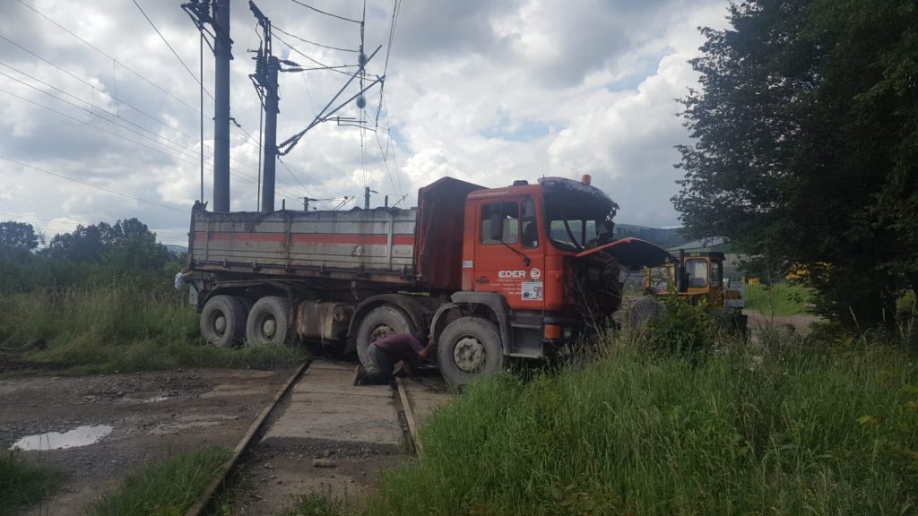 FOTO Ghinion! A fost lovit de tren după ce i s-a oprit motorul mașinii pe calea ferată