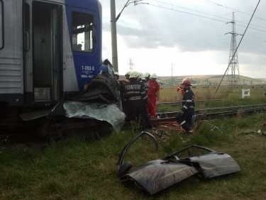 Maşină izbită de tren la Podeni. Vina aparţine unui italian