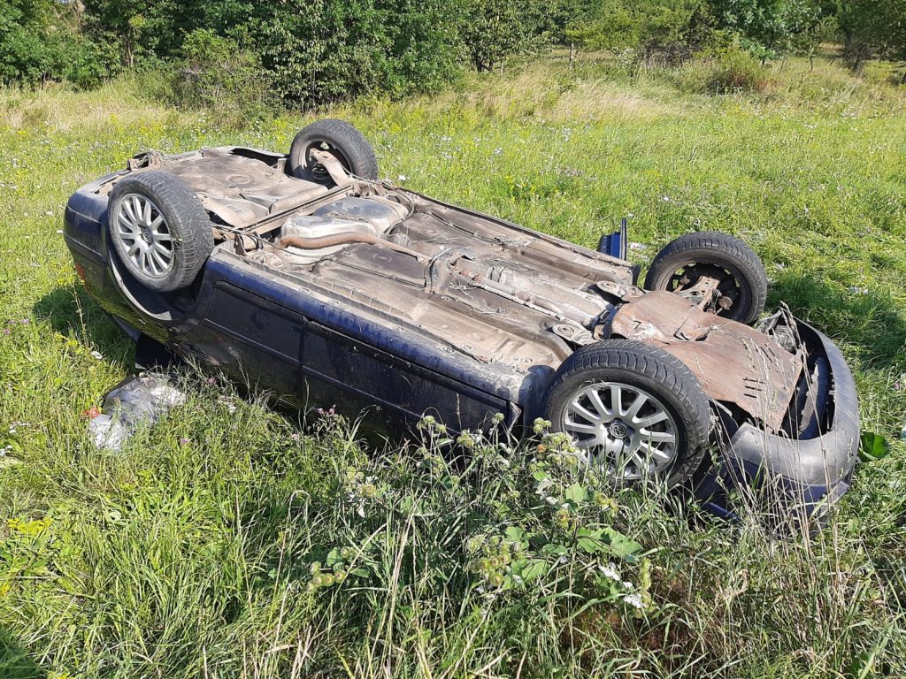 Accident cu doi răniți după ce o mașină a intrat într-un cap de pod și s-a răsturnat