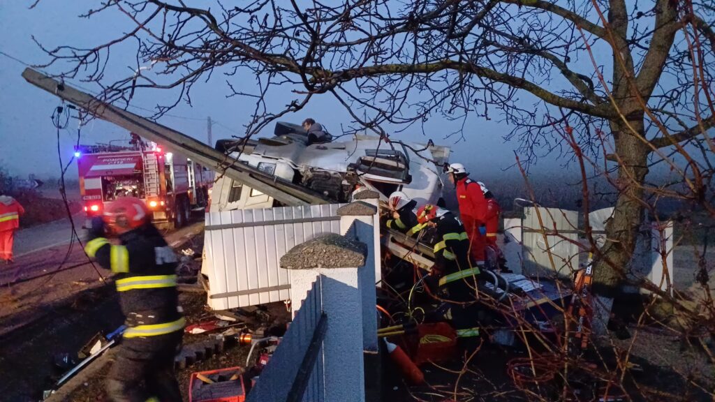 Mașină, în care se aflau o femeie și doi copii, proiectată pe un parapet după impactul cu un TIR 21 noiembrie 202521 noiembrie 2025 …