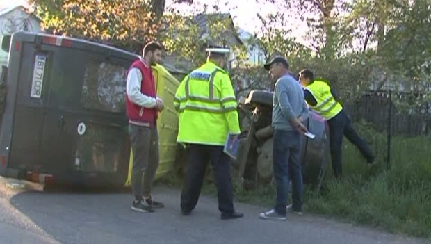 FOTO Şofer ajuns la spital după un accident spectaculos