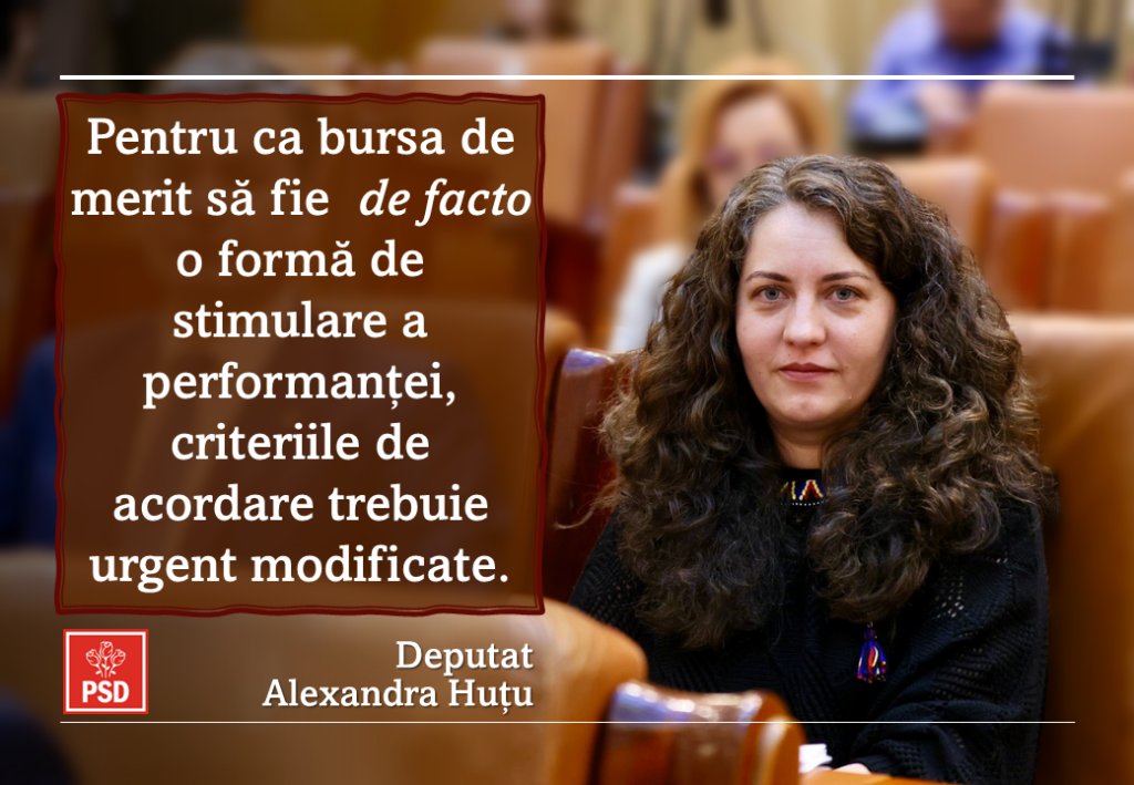 Alexandra Huțu: „Pentru ca bursa de merit să fie de facto o formă de stimulare a performanței, criteriile de acordare trebuie urgent modificate!” 30 octombrie 2023 …