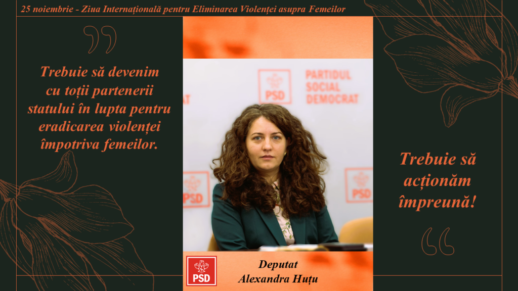 Comunicat PSD: Deputatul Alexandra Huțu susține lupta pentru eliminarea violenței împotriva femeilor 27 noiembrie 2023 …