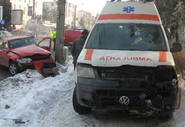Patru ambulanţe blocate în troienele de zăpadă. Două se deplasau după două gravide