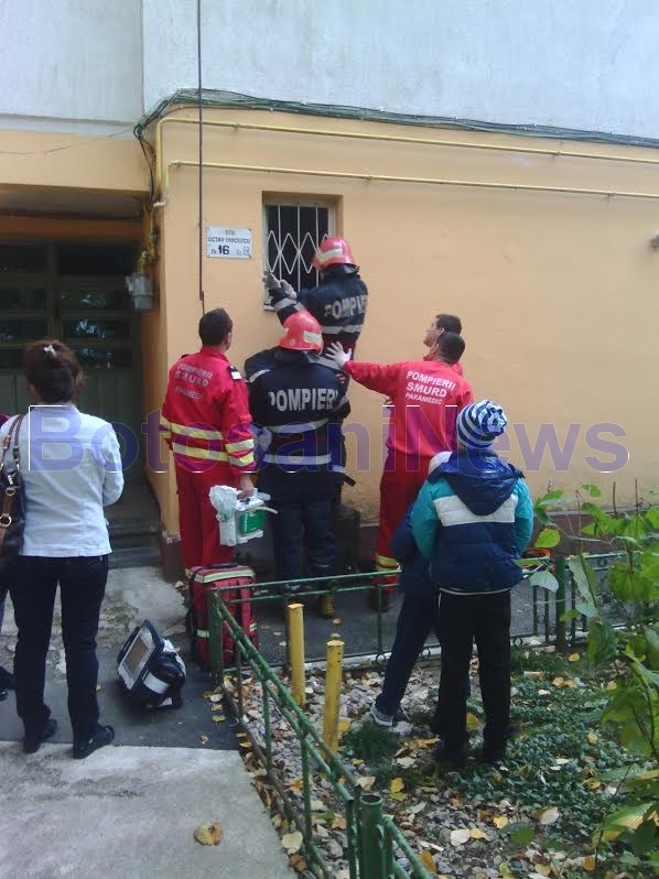 FOTO Pompierii au spart uşa unui apartament pentru a scoate un bărbat bolnav