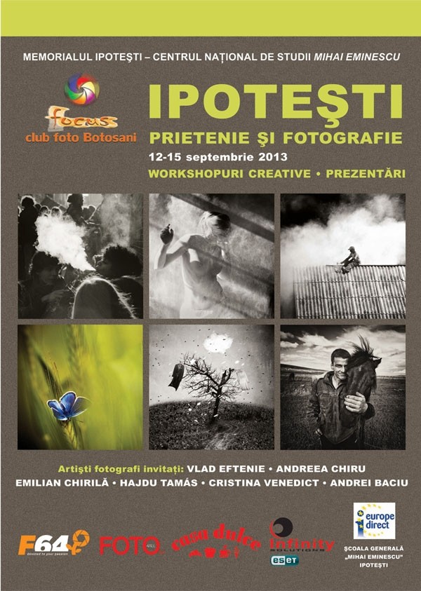 În perioada 12-15 septembrie are loc la Ipoteşti Workshop-ul “PRIETENIE ŞI FOTOGRAFIE” ediţia a I-a. Evenimenteul este organizat de Club Foto Focus Botoşani în parteneriat cu Memorialul Ipoteşti – Centrul Naţional de Studii Mihai Eminescu şi Centrul Europe Direct Botoşani. Tabăra Naţională de Artă Fotografică “Prietenie şi Fotografie” se va desfăşura în incinta Memorialului Ipoteşti, […]
