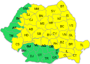 O nouă atenţionare meteo de cod galben emisă de meteorologi