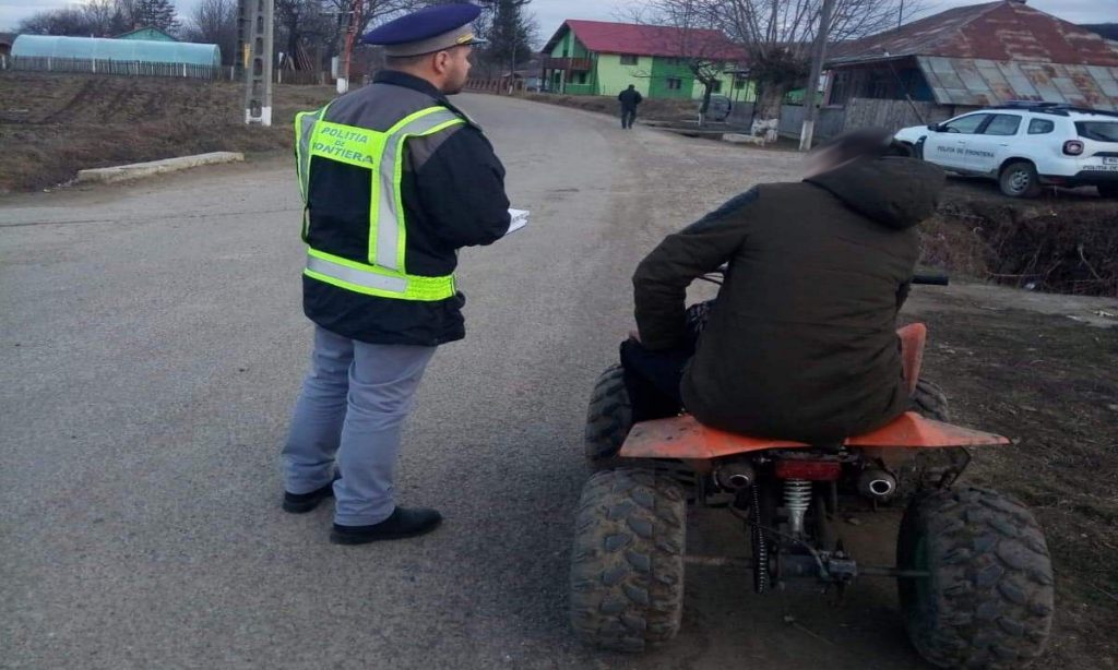 Copii depistaţi în timp ce conduceau un ATV pe drum public