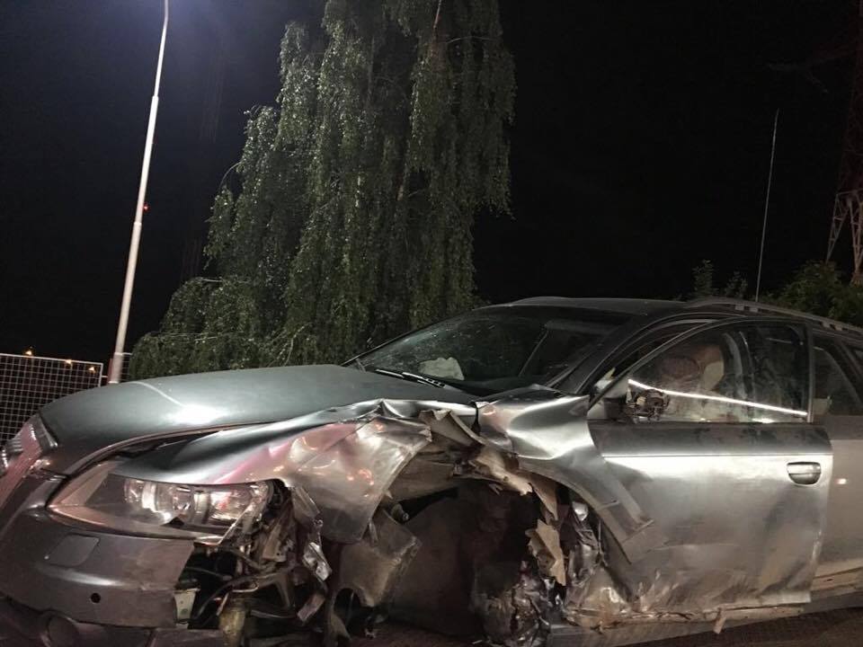 Bărbat rămas încarcerat într-un Audi după ce s-a izbit de un cap de pod