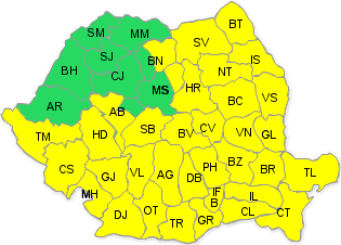 Administrația Națională de Meteorologie a emis, joi dimineață, o nouă avertizare meteo de Cod galben