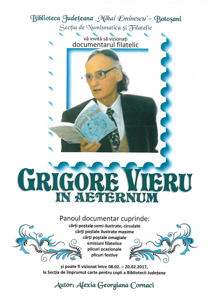 In Aeternum Grigore Vieru – Exponat filatelic inedit la Biblioteca Judeţeană