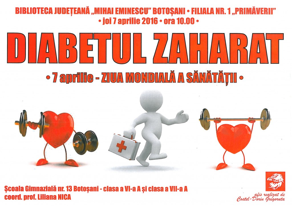Filiala din Primăverii a Bibliotecii Județene ”Mihai Eminescu” Botoșani vă invită, joi ,7 aprilie 2016, de la ora 10.00, la o manifestare dedicată Zilei Internaționale a Sănătății. Organizată împreuna cu elevii Școlii Gimnaziala nr. 13 Botoșani, clasa a 6-a A și a 7-a A , prof. Liliana Nica, acțiunea are ca scop pregătirea și informarea, intr-un mod […]