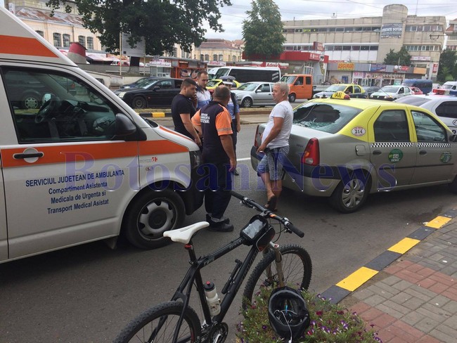 FOTO Biciclist ajuns la spital, după ce a plonjat într-o maşină