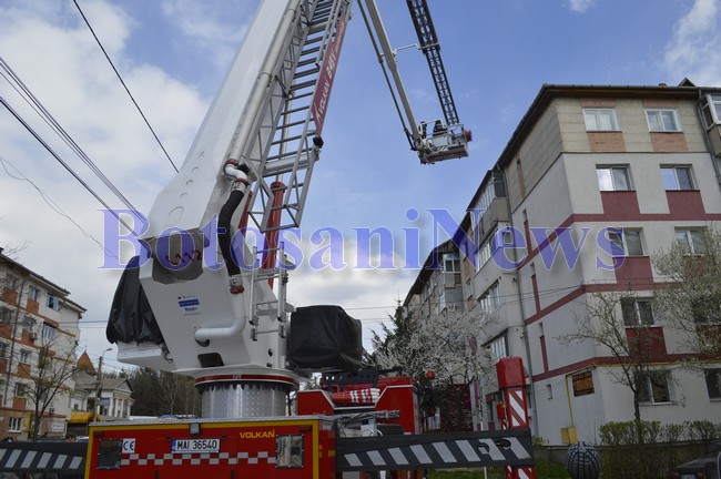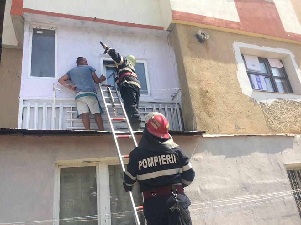 Pompierii au intrat pe geamul unei locuinţe de la etajul IV pentru a scoate o femeie bolnavă