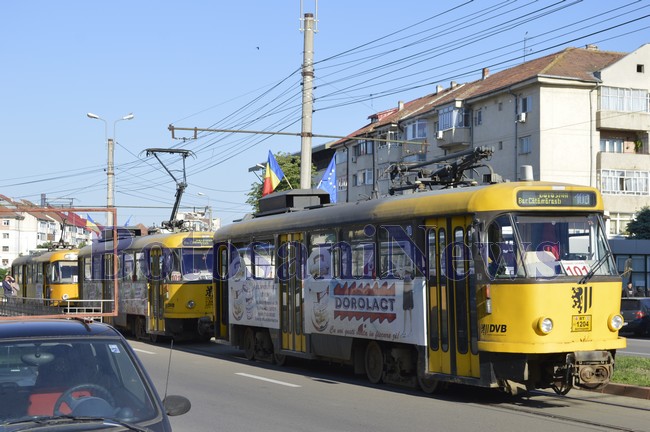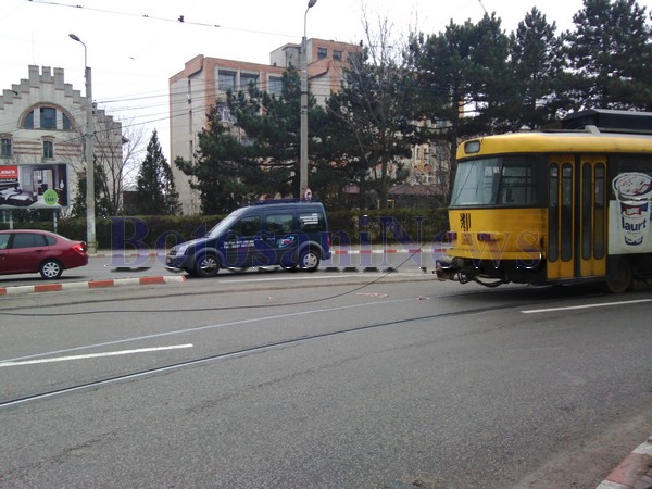 Circulaţia tramvaielor blocată de un şofer neglijent. FOTO!