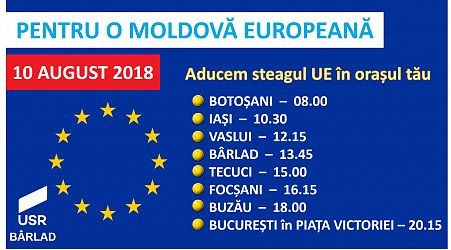 Filialele USR din Bârlad, Botoșani, Iași, Vaslui, Galați, Vrancea, Buzău organizează vineri, 10 august 2018, un marș “Pentru o Moldovă Europeană” și invită cetățenii din regiunea Moldovei să participe într-un număr cât mai mare la turul desfășurării celui mai mare steag al Uniunii Europene din România. Peste 50 de membri ai filialelor USR din Moldova […]