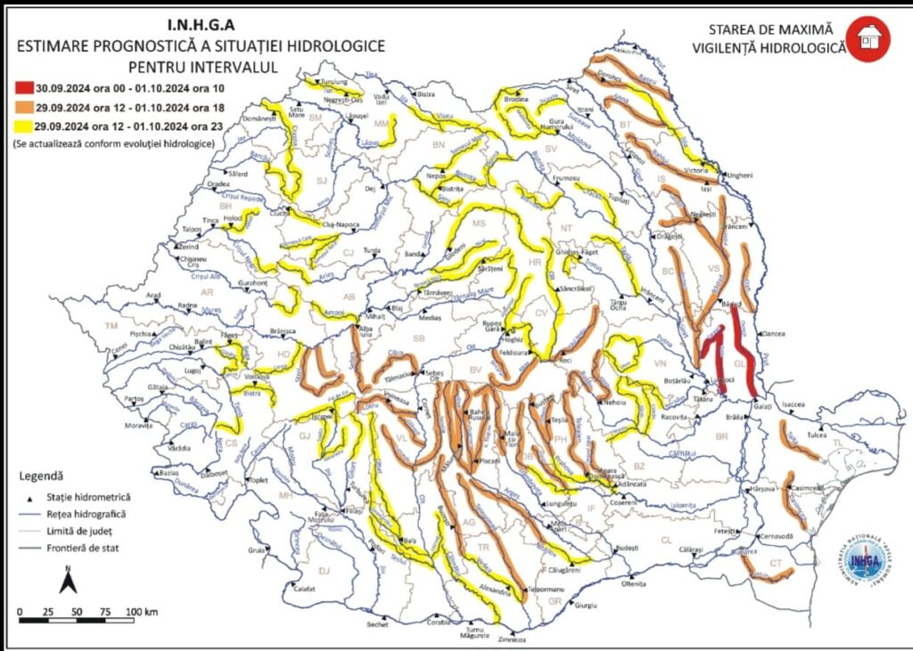 Alertă hidrologică! Județul Botoșani, sub Cod portocaliu și galben de inundații 29 septembrie 202429 septembrie 2024 ….