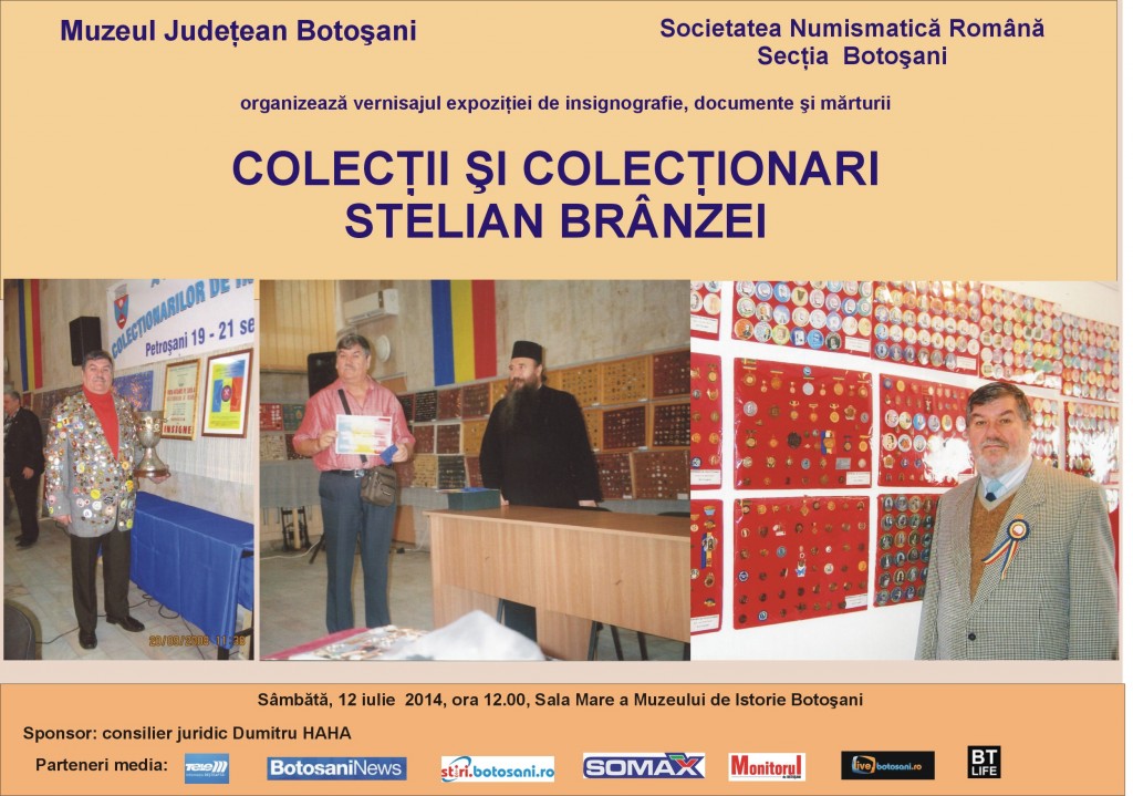 Muzeul Județean Botoșani va găzdui, sâmbătă, 12 iulie, de la ora 12.00, o expozitie de documente, monezi și mărturii adunate de-a lungul timpului de un botoșănean care de la varsta de 10 ani și-a dedicat timpul colectiilor sale. Acum, în vârstă de 60 ani, Stelian Brînzei deține 45.000 de insigne si 6.000 de medalii și […]