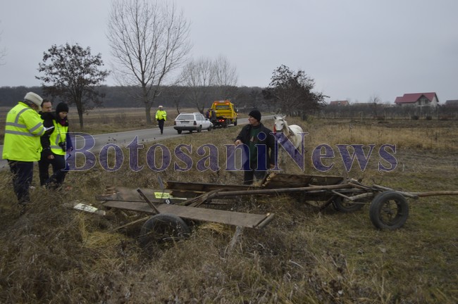 Căruţă spulberată de o maşină. Şoferul băut a fugit de la faţa locului