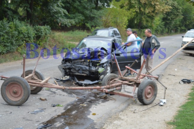 FOTO Accident la Stăuceni. Căruţă spulberată de o maşină