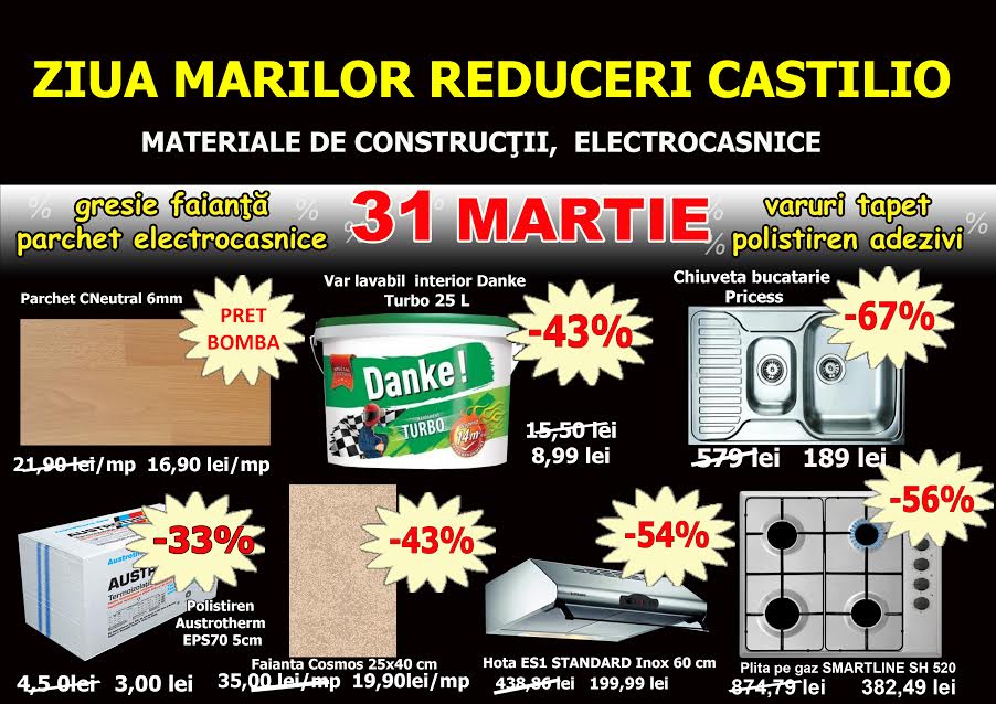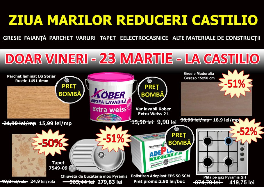 Ziua Marilor Reduceri la Castilio doar vineri, 23 martie. Vezi produsele aflate la reducere!