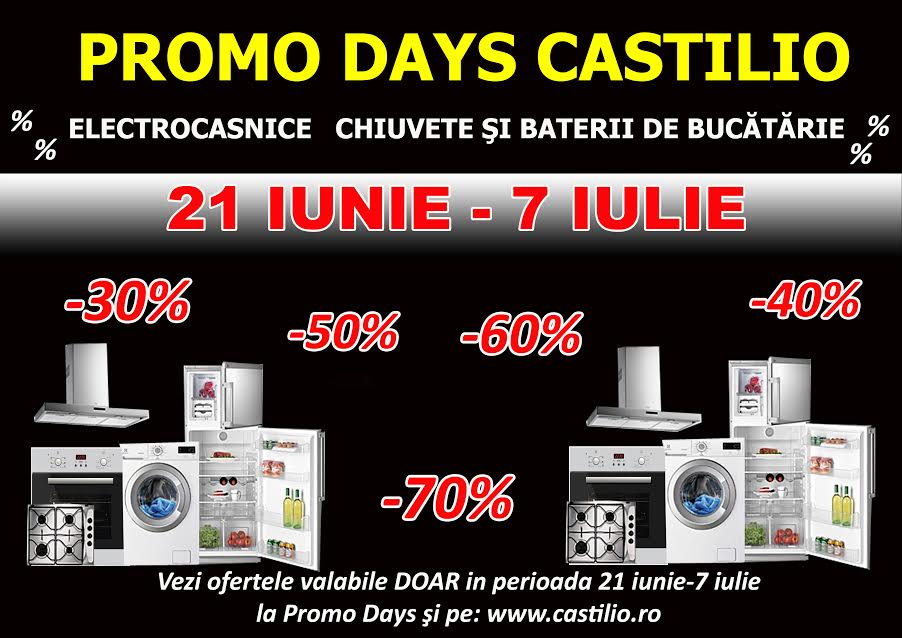 Promo Days la Castilio cu reduceri de până la 70% la electrocasnice, chiuvete şi baterii. Descoperă promoţiile!