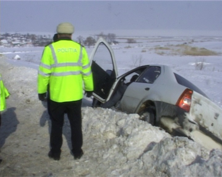 FOTO Un şofer s-a speriat de poliţie şi a ajuns cu maşina în şanţ