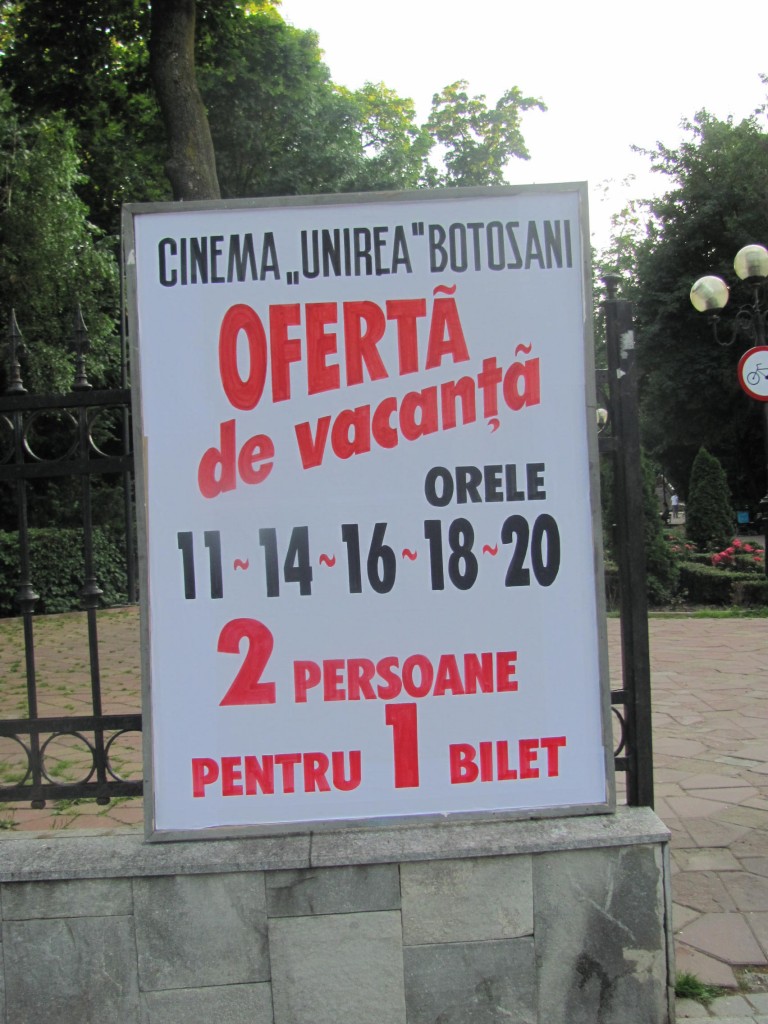 Cinematograful Unirea a lansat pentru botoșăneni o ofertă estivală pentru a-i atrage în fața marelui ecran. Astfel, între orele 11-14, 14-16 și respectiv 18-20, cu un bilet achiziționat pot intra două persoane. Majoritatea filmelor românești de actualitate sunt lansate la cinematograful Unirea, acesta fiind de altfel și unul principalele puncte de atracție ale locului. Desigur, […]