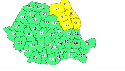 Un nou Cod galben emis de meteorologi pentru județul Botoșani