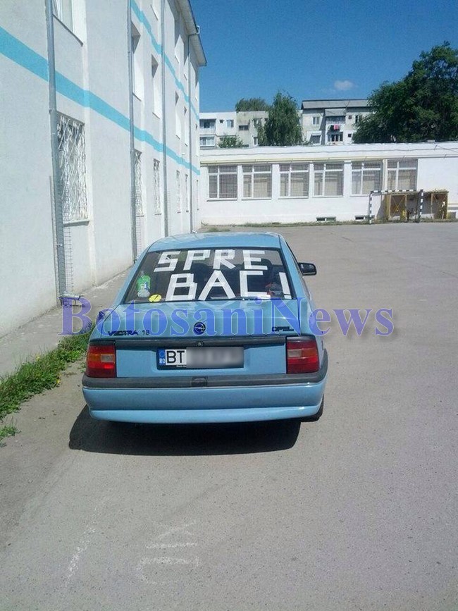 Un elev ce susţine examenul de Bacalaureat a ales o metodă inedită de a spune lumii acest lucru. Şi-a scris pe maşină un mesaj cât se poate de clar „Spre Bac”, scrisul acoperind toată luneta. Elevul, absolvent al Colegiului Naţional Mihai Eminescu se mândreşte cu susţinerea examenului şi spune că va merge aşa la toate […]