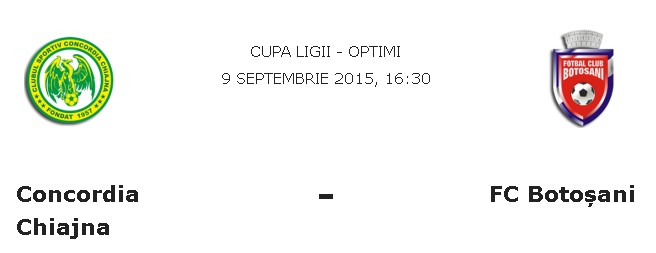 FC Botoşani reia meciurile oficiale după pauza pricinuită de meciurile echipei naţionale cu un joc împotriva Concordiei Chiajna în optimile Cupei Ligii. Meciul se va disputa, miercuri, de la 16.30 şi va fi transmis de Digi Sport1. Partida va fi arbitrată de Mladinovici Horia, central şi asistenţii Imre Laslo Bucşi şi Dragoş Iliescu.