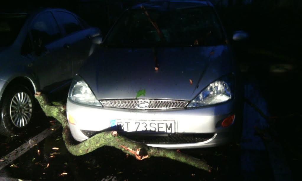FOTO O maşină a fost distrusă de un copac rupt de furtună