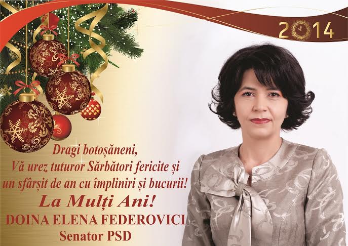 “Fie ca spiritul Crăciunului să vă lumineze casa, iar bucuria şi speranţa să vă rodească în inimi. Sărbători fericite şi un an nou mai prosper!” Primarul municipiului Botoşani, Ovidiu Portariuc