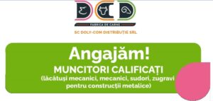 Doly Com Distribuție angajează personal calificat și necalificat pentru noua secție modernizată de producție a mezelurilor 12 aprilie 202512 aprilie 2025 …